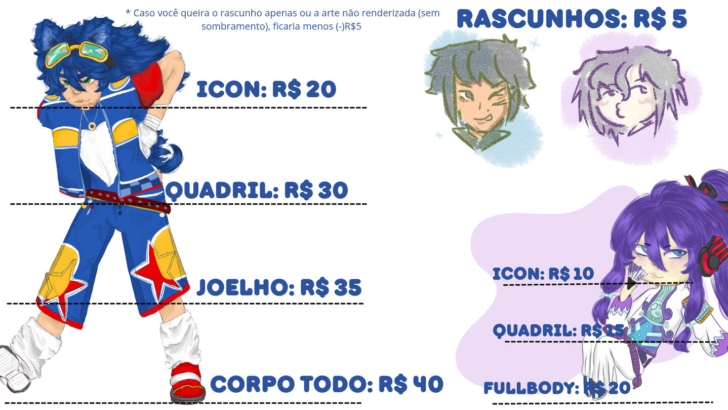 *O valor pode ser negociado dependendo na complexidade da arte (Para um valor maior ou menor)